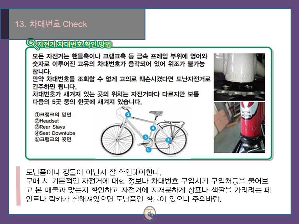 수리기술이 발달하여 수리 후 도색해버리면 사고여부 판단이 힘드니 꼼꼼히 살펴봐야한다.