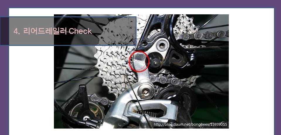 그리고 리어드레일러가 갈렸다면 행어쪽도 휘지 않았는지 체크하는게 좋다.